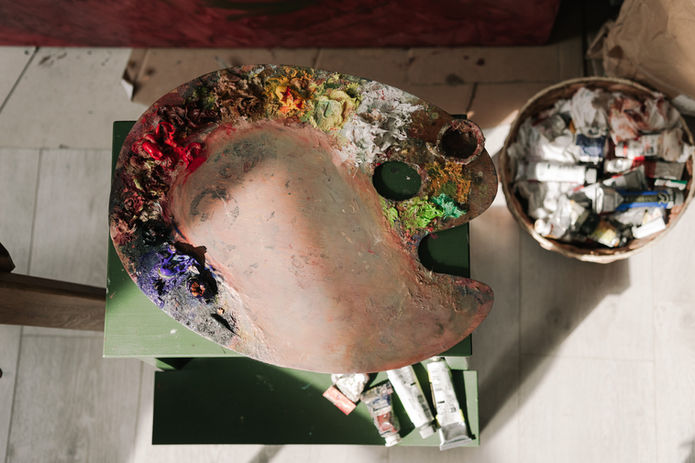 Yana: I need my own easel and stand, high ceilings, air. Ideally, space that doesn’t press on you but gives room to think. I’ve painted big canvases in tighter conditions too (in Georgia). The ideal studio is simply the one where you can work.